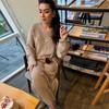 Outono 2024 nova moda europeia e americana cross-border moda sólida cor redonda pescoço solto top saia terno mulheres