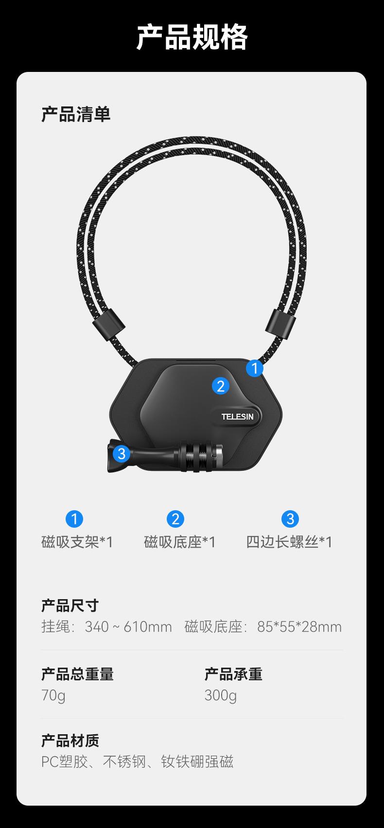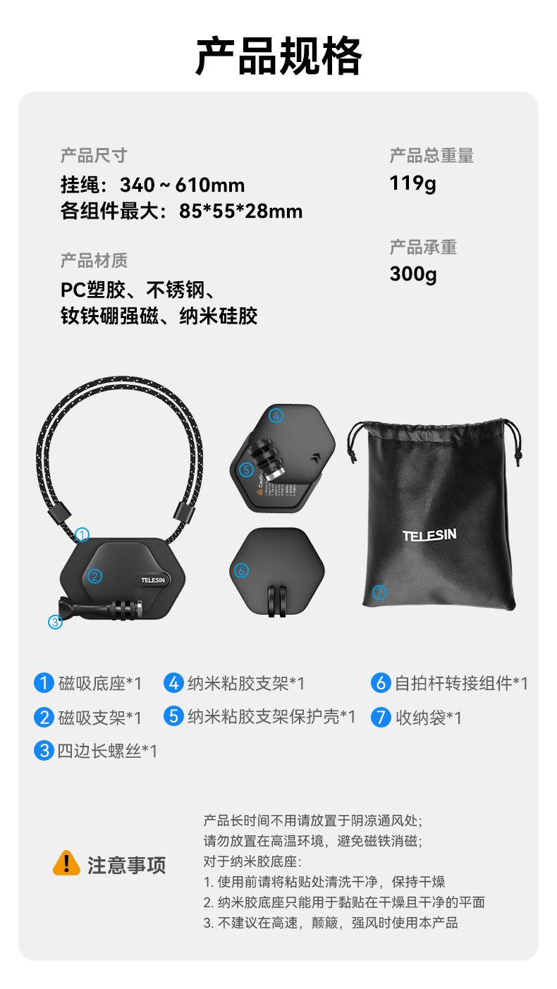 Telesin Novo Suporte Magnético Pendurado no Pescoço Dji Osmo 360 Adapta-se a Gopro13 Peito Suporte para Celular