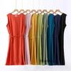 Vestido Feminino Artístico Casual Listrado de Algodão Sem Mangas Decote V Camadas Duplas Comprimento Médio Estilo Novo 2025
