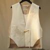 2025 Primavera e Outono Novo Estilo Pequenos Tops Ocidentais Novo Estilo Chinês Estilo Nacional Colete Branco para Mulheres
