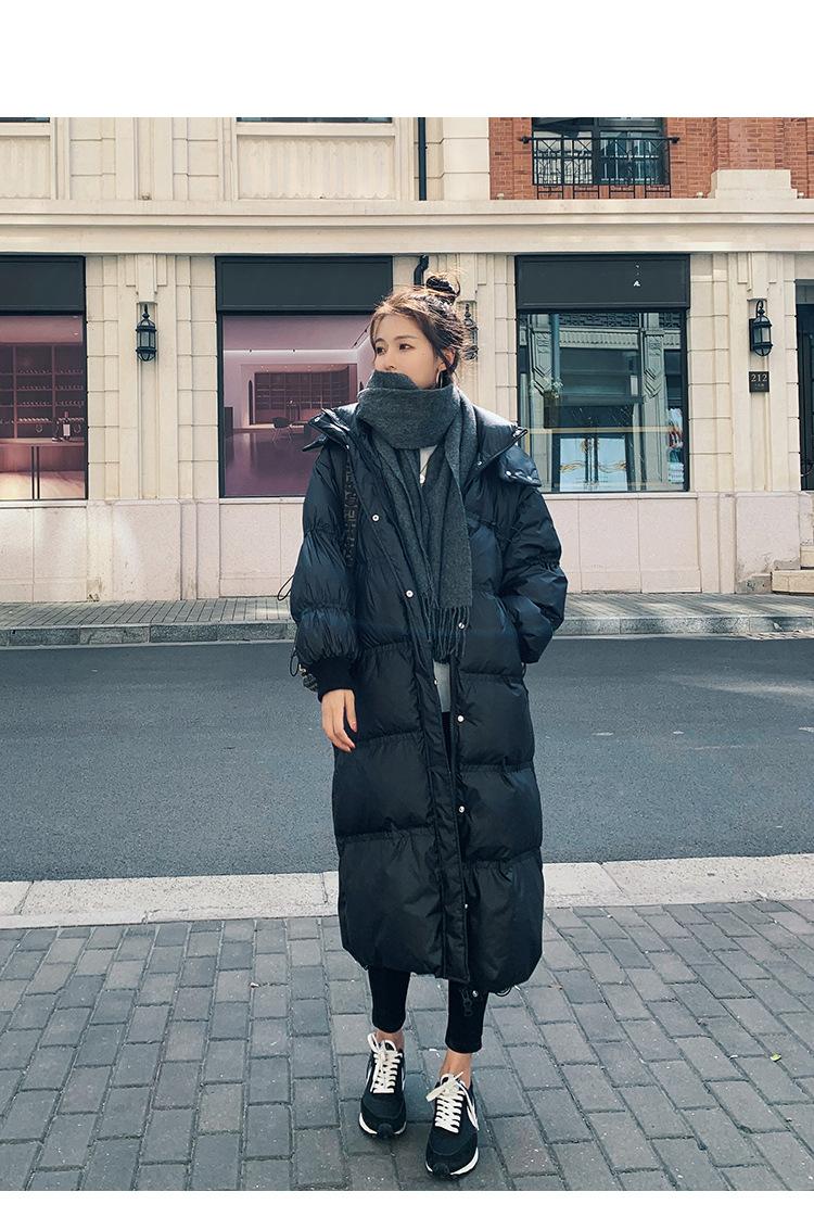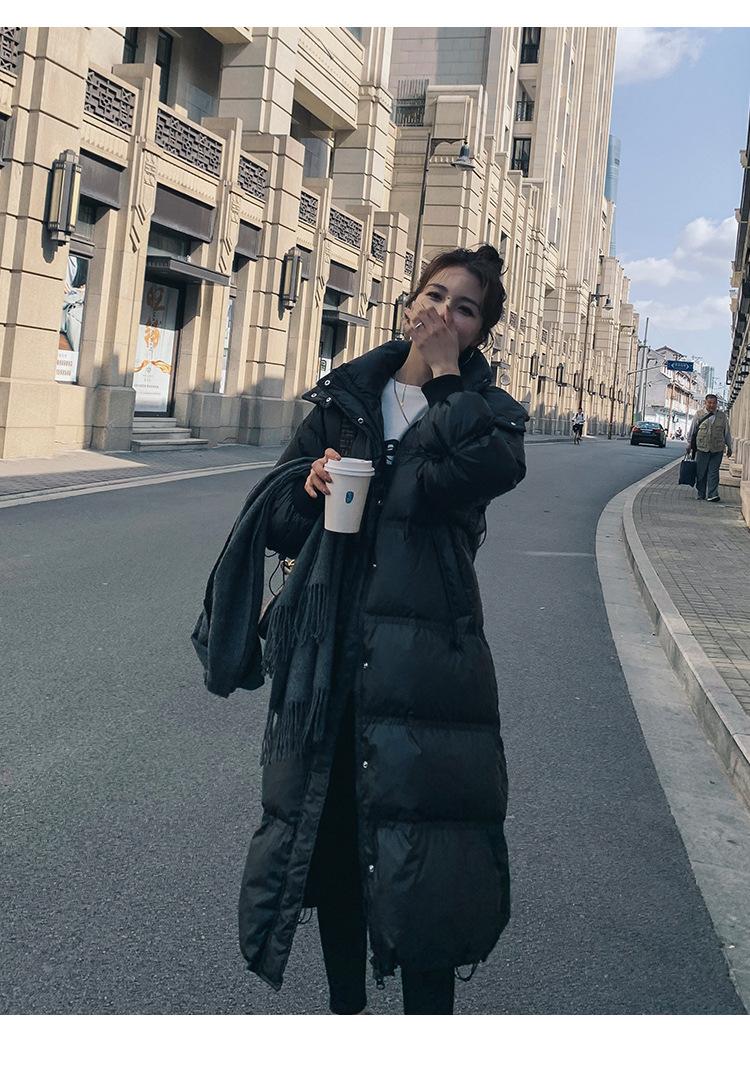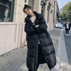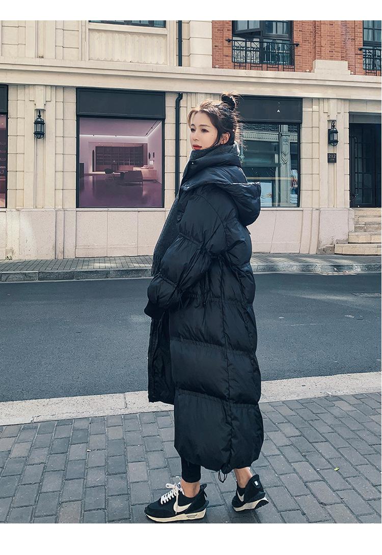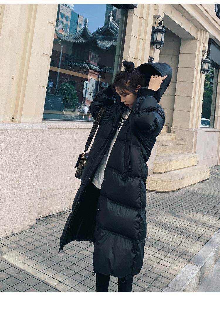 2024 novo inverno longo chique algodão-acolchoado jaqueta preta para baixo algodão-acolchoado casaco com capuz pão acolchoado mulheres