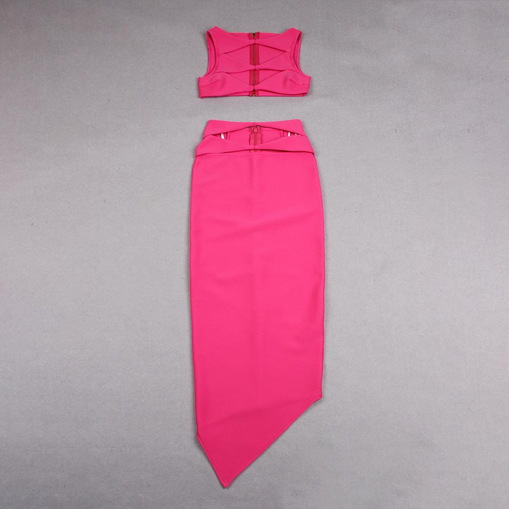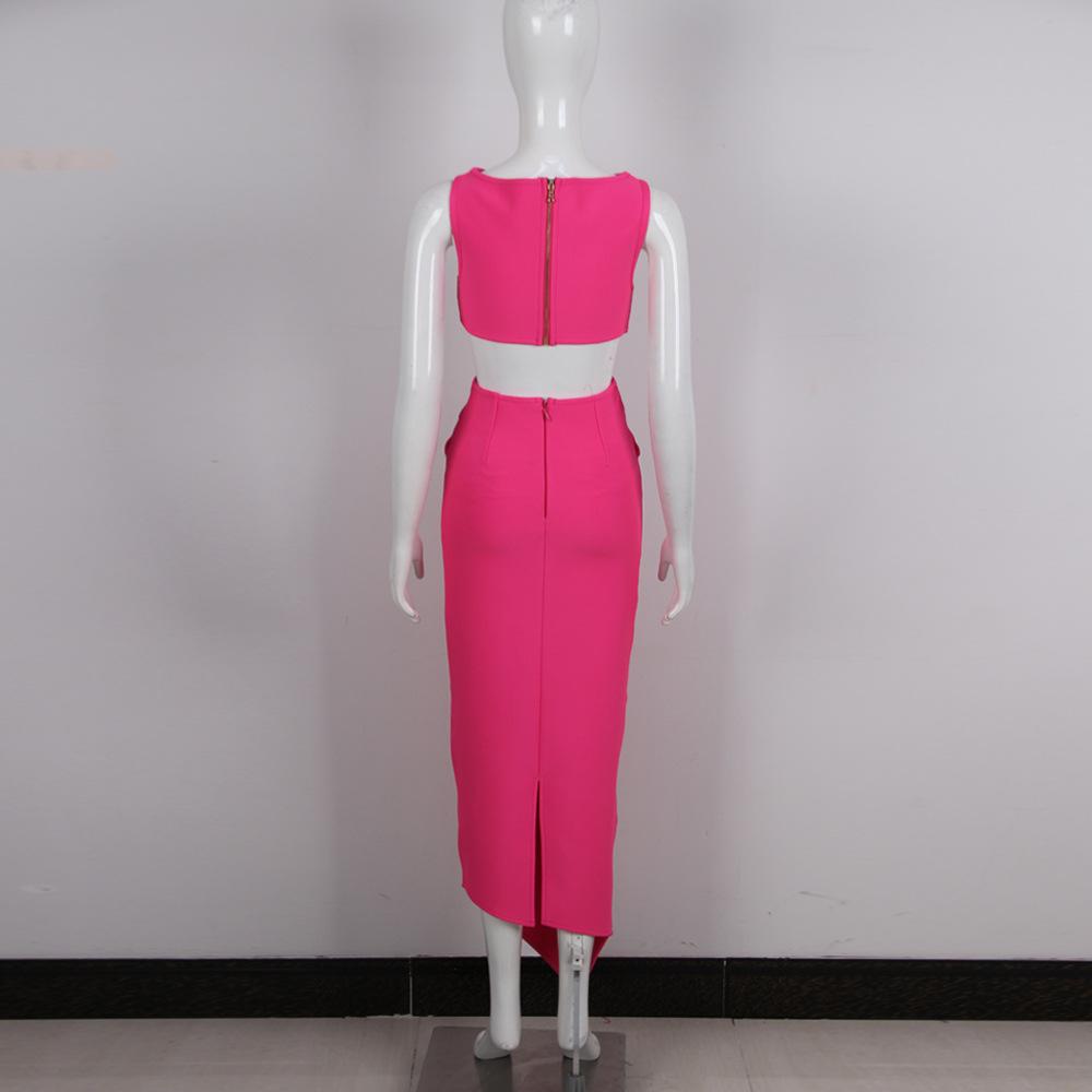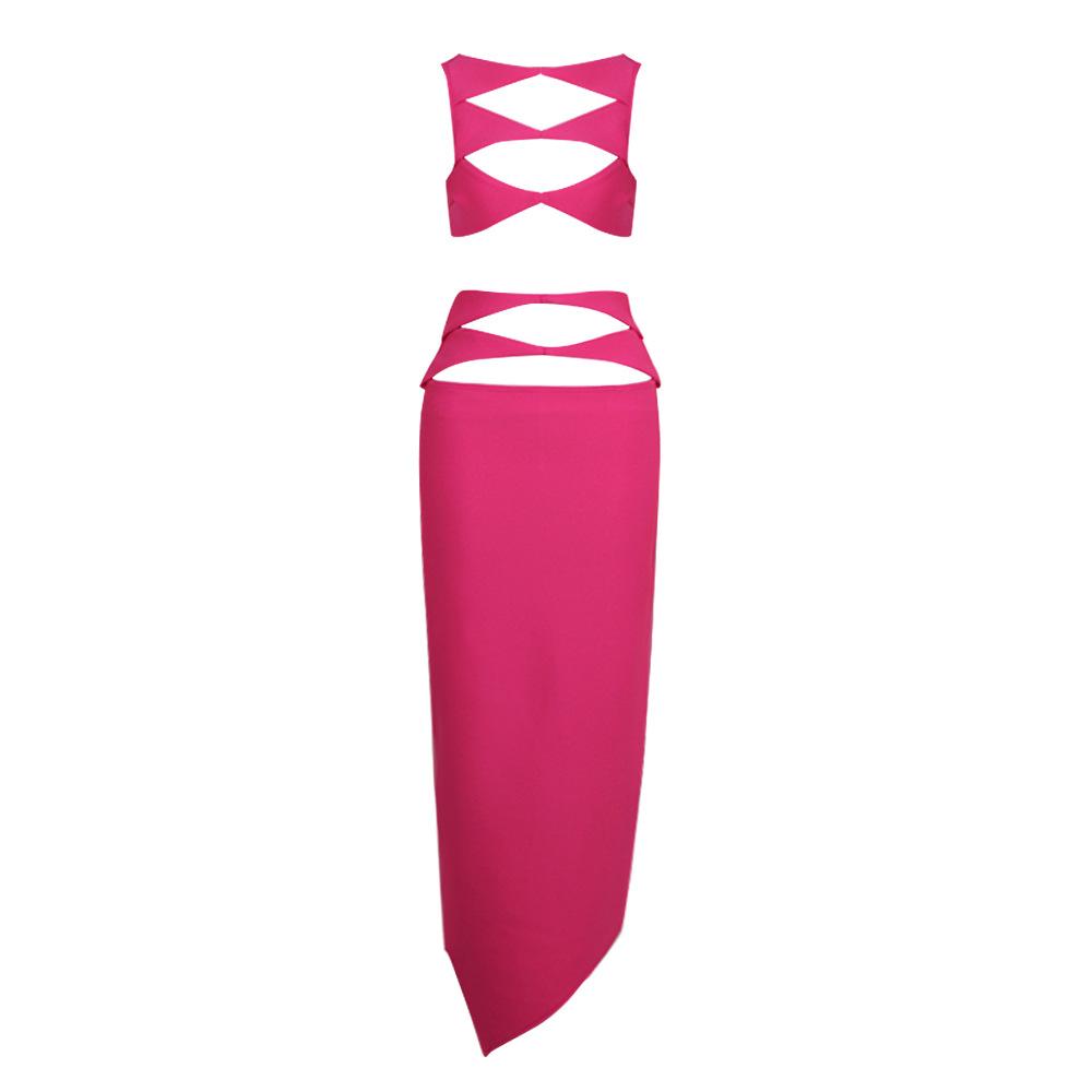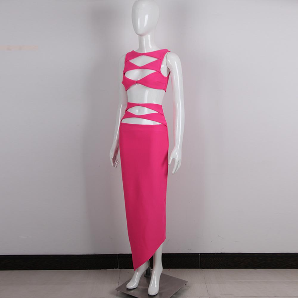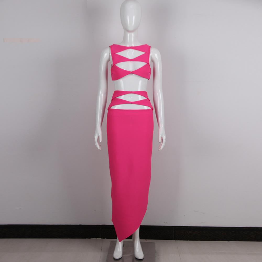 2023 Verão e outono Europeu e americano nova moda feminina sexy oco apertado cintura alta quadril vestido bandagem conjunto de duas peças