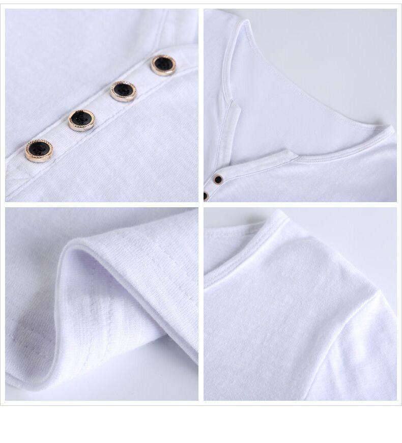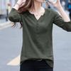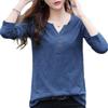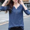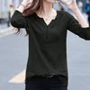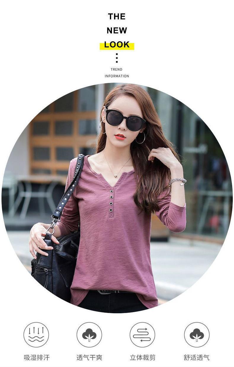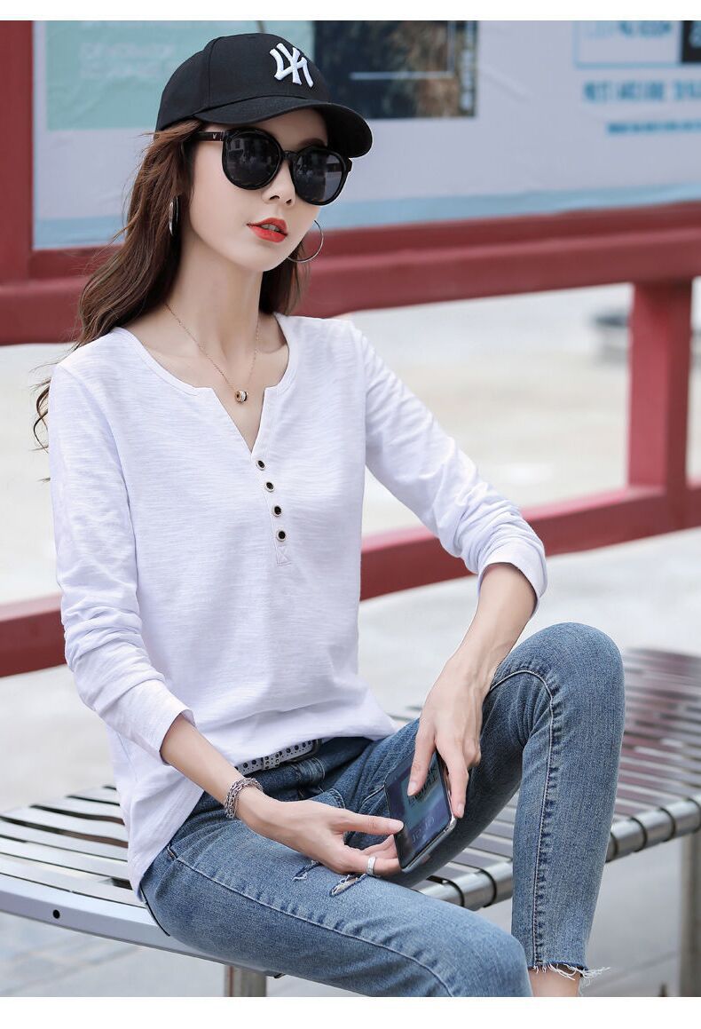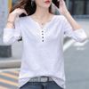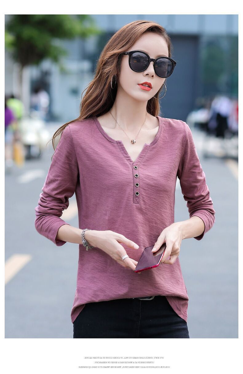 Camiseta feminina de 5 cores de algodão de manga comprida 2022 novo estilo coreano outono e inverno botão V-neck top bottoming shirt