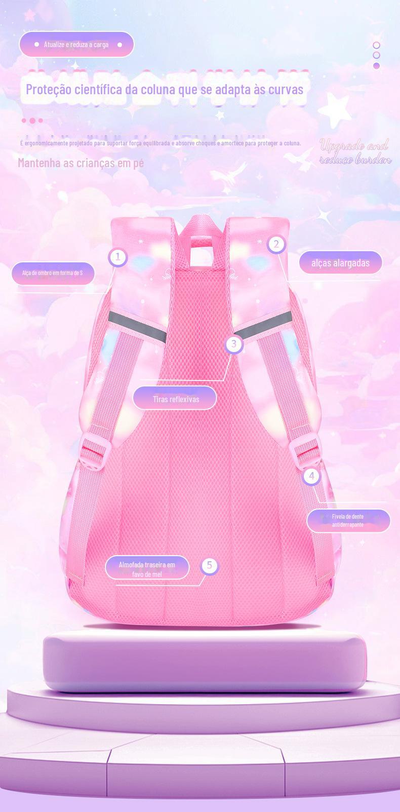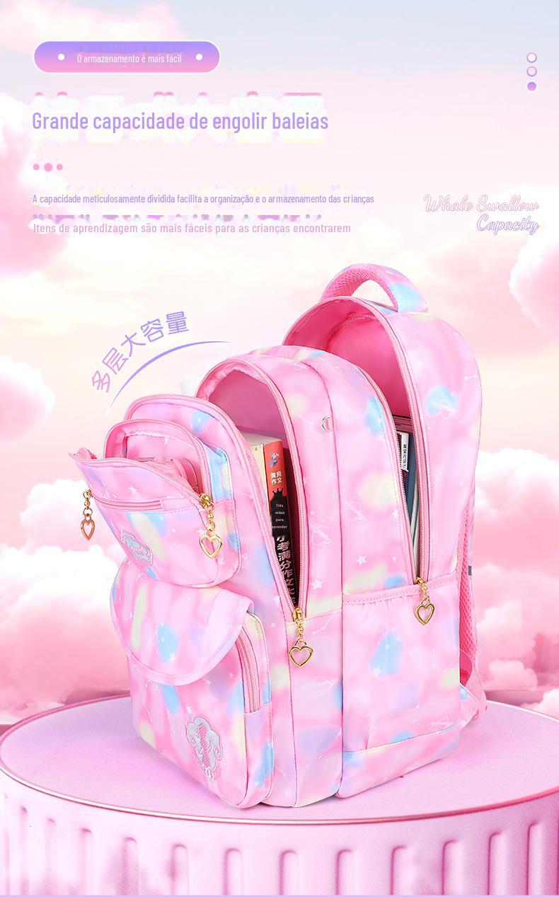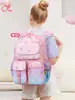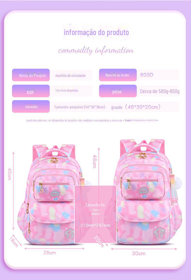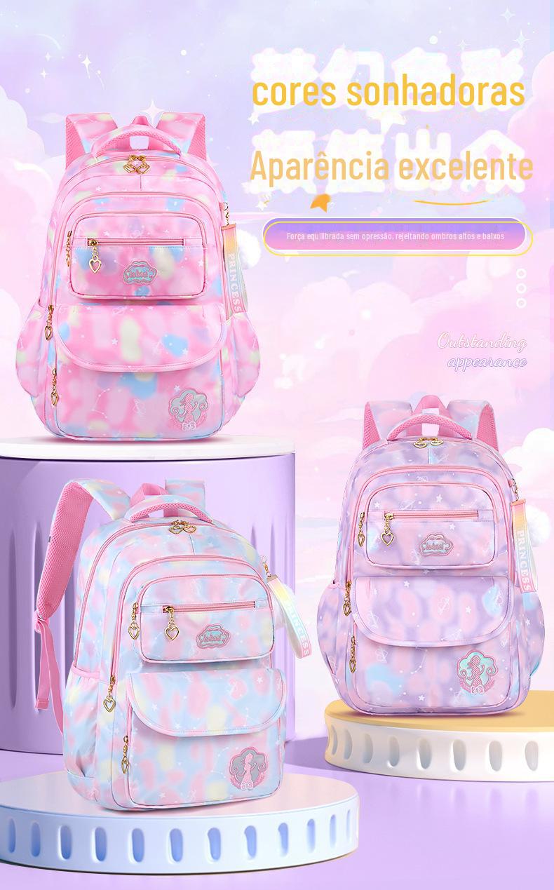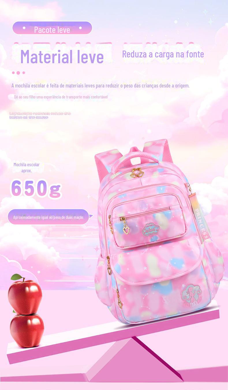 Mochila de estudante do ensino fundamental bolsa de flores arco-íris feminina com redução de carga proteção da coluna resistente ao desgaste mochila mochila infantil leve para a 1ª à 6ª série