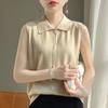 Colete Tricotado de Lã Feminino Estilo Curto 2025 Primavera & Outono Novo Jacquard Retrô Decote em V Pulôver Colete com Colete