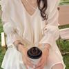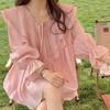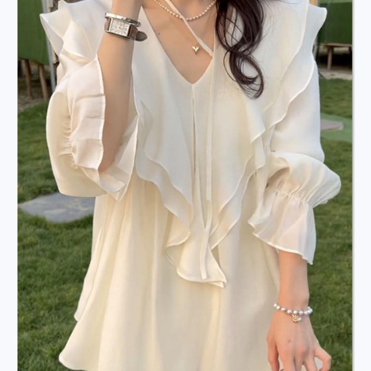 Estilo francês suave V-Neck camisa babada feminina primavera e outono novo estilo coreano design sentido nicho fada top chique