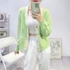 Roupa Feminina Transfronteiriça Novo Estilo Início da Primavera Cardigã Top em Bloco de Cores Francês Padrão Losango Vazado Jaqueta Tricotada Solta de Manga Comprida para Mulheres