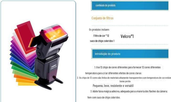 A lanterna é uma ferramenta de fotografia para fotografia diária, então muitas pessoas gostam de adicionar vários filtros de cores na frente da lanterna para fazer com que ela emita várias cores. 12 filtros de flash coloridos para fotografia criativa com flash
