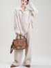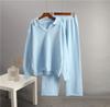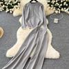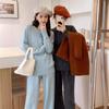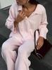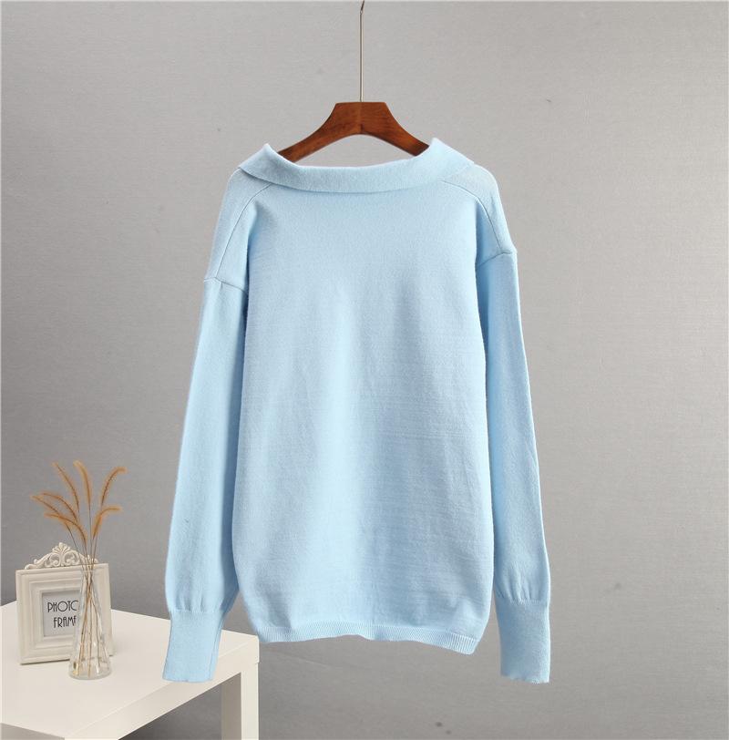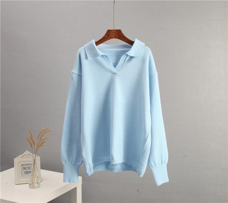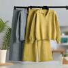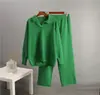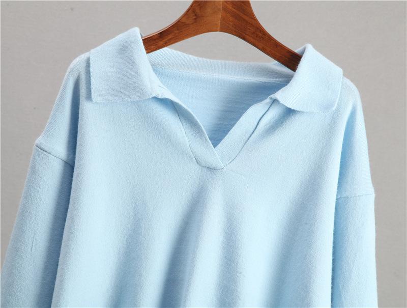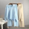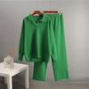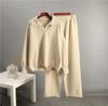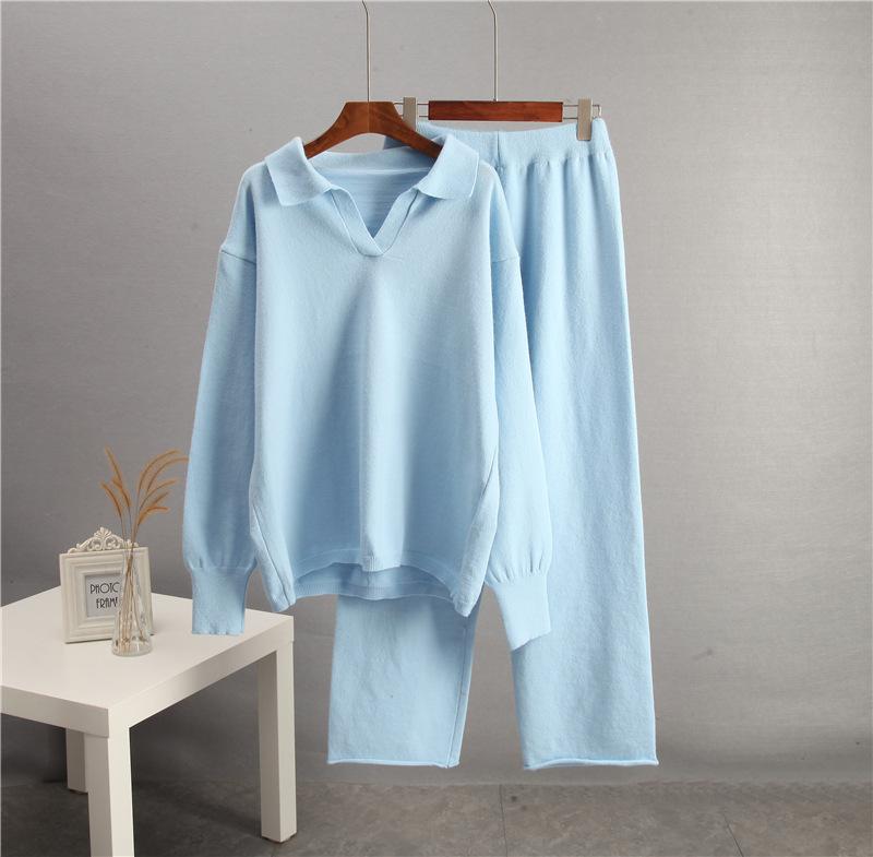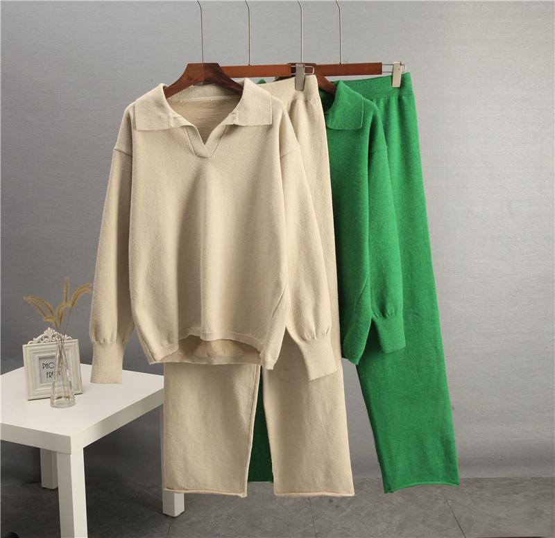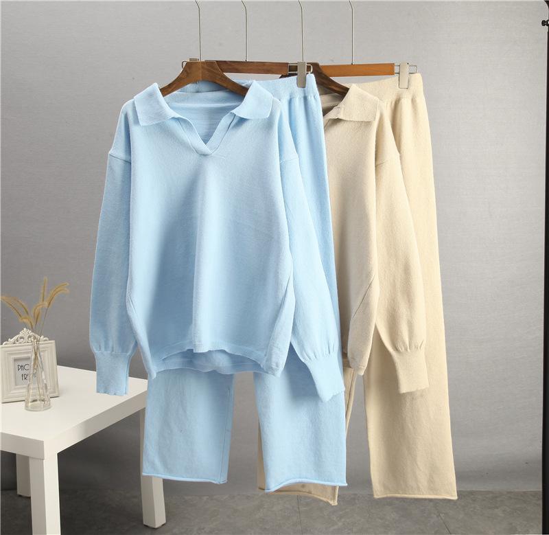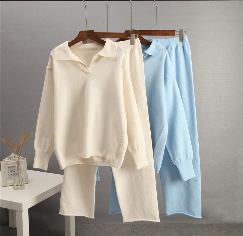 Europeu e Americano Outono e Inverno Solid Color Lapel Sweater Set Mulheres Loose Knitted polo Collar Sweater Wide Leg Pants Two-piece Set