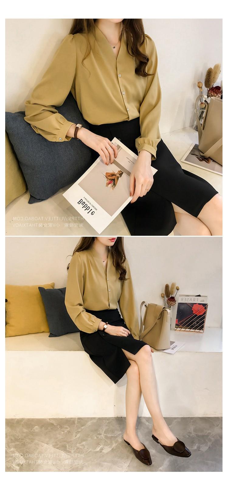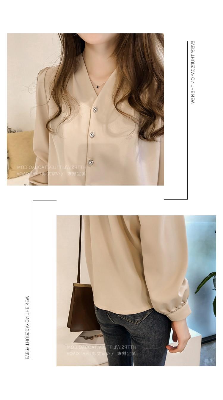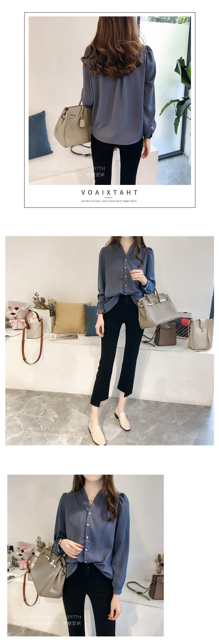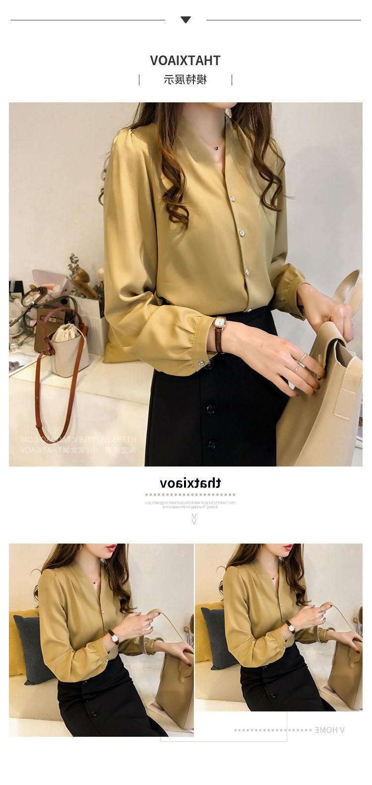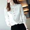 2023 Outono Novo Feminino Simples Elegante Cor Sólida Chiffon Camisa Feminina de manga comprida Top Loose Estilo Coreano Camisa