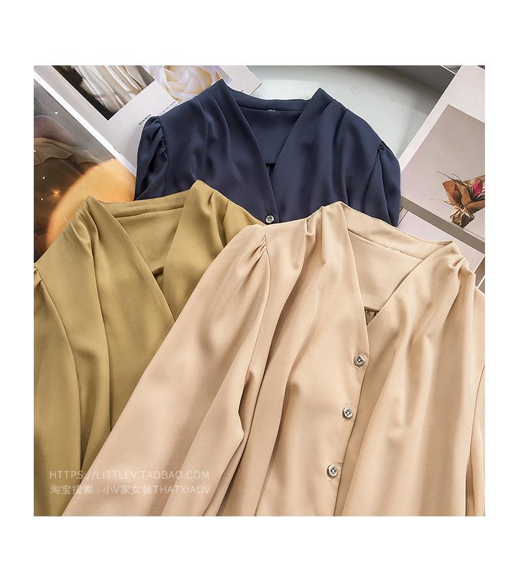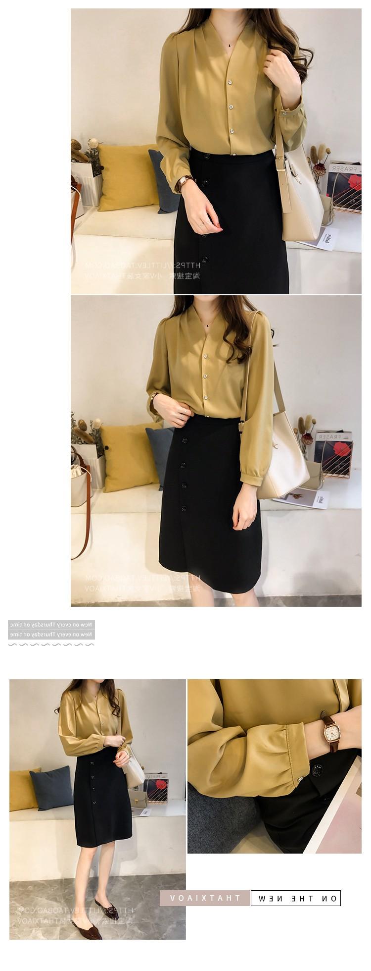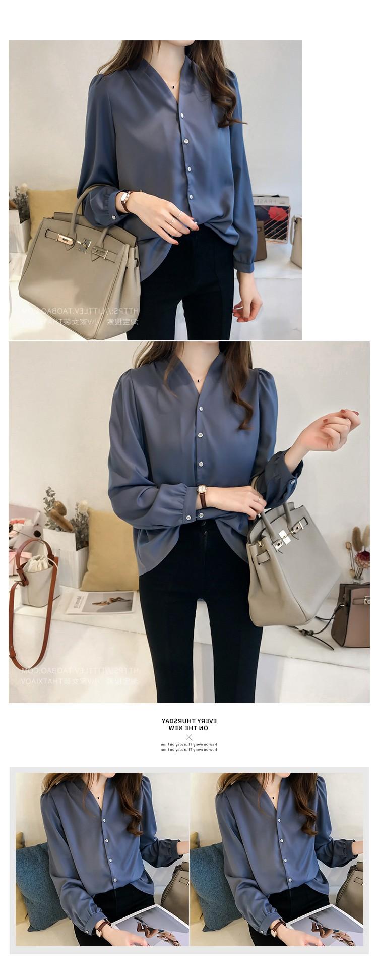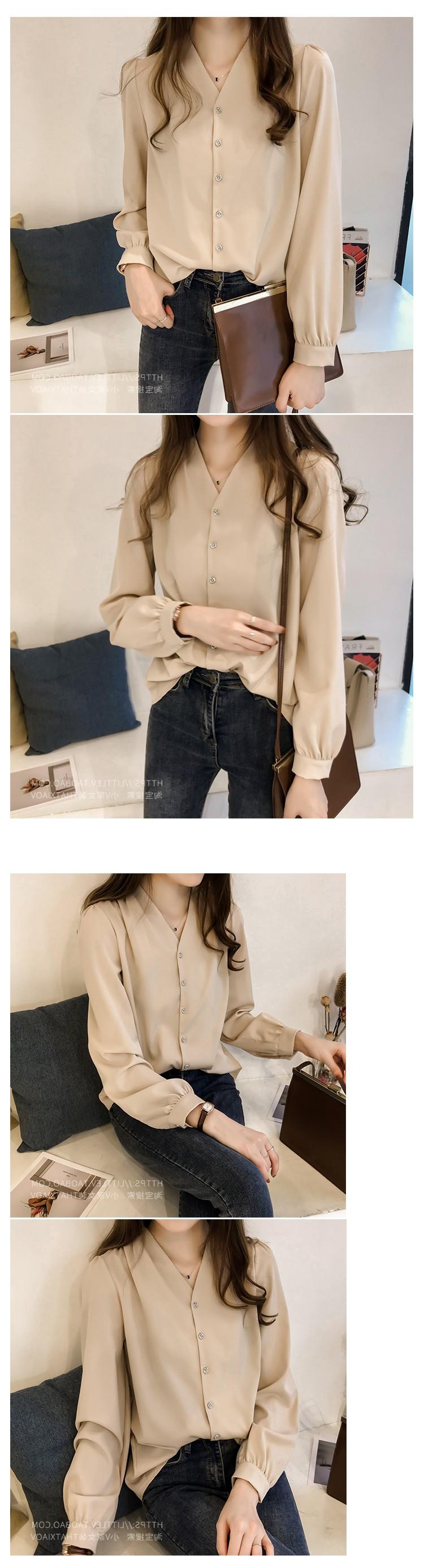 2023 Outono Novo Feminino Simples Elegante Cor Sólida Chiffon Camisa Feminina de manga comprida Top Loose Estilo Coreano Camisa