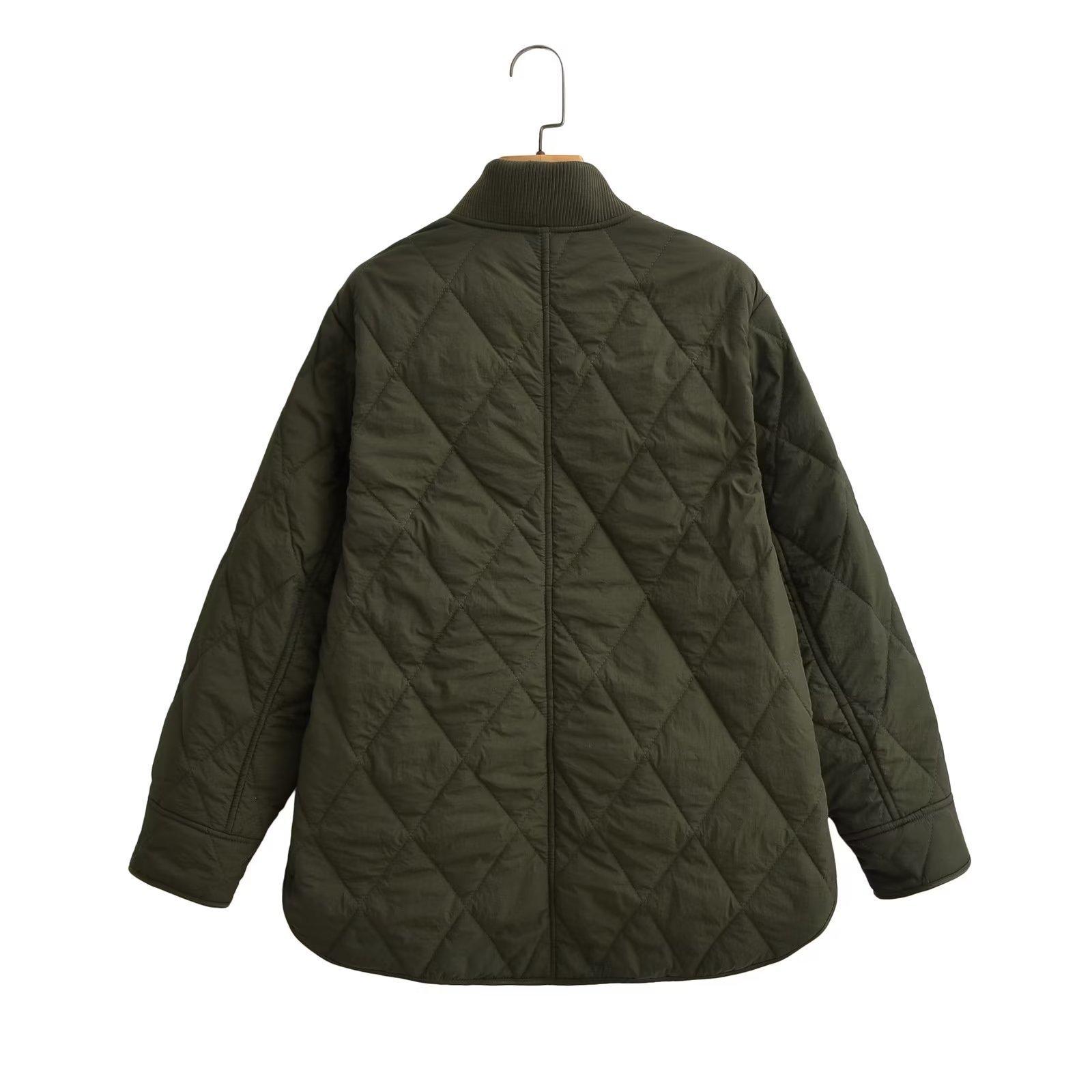 2023 Inverno Novo Gola Alta Cor Sólida Diamante Grade Solto All-match Algodão Casaco Feminino Z1700