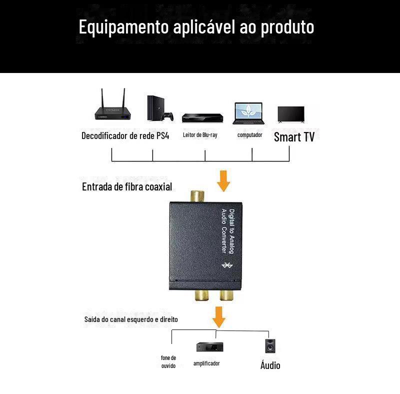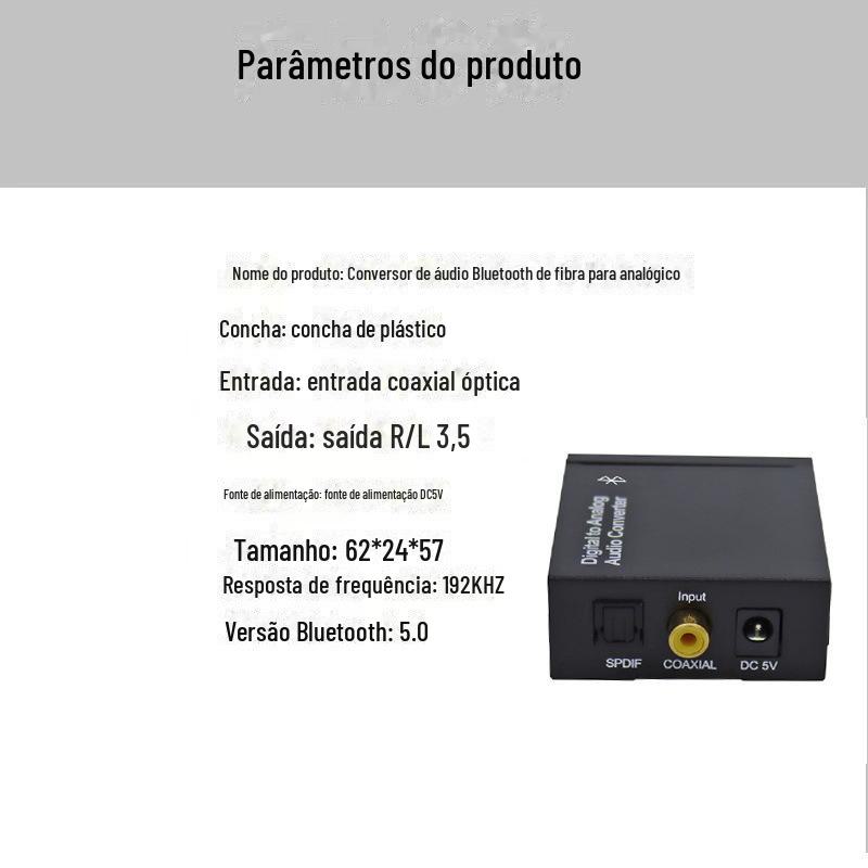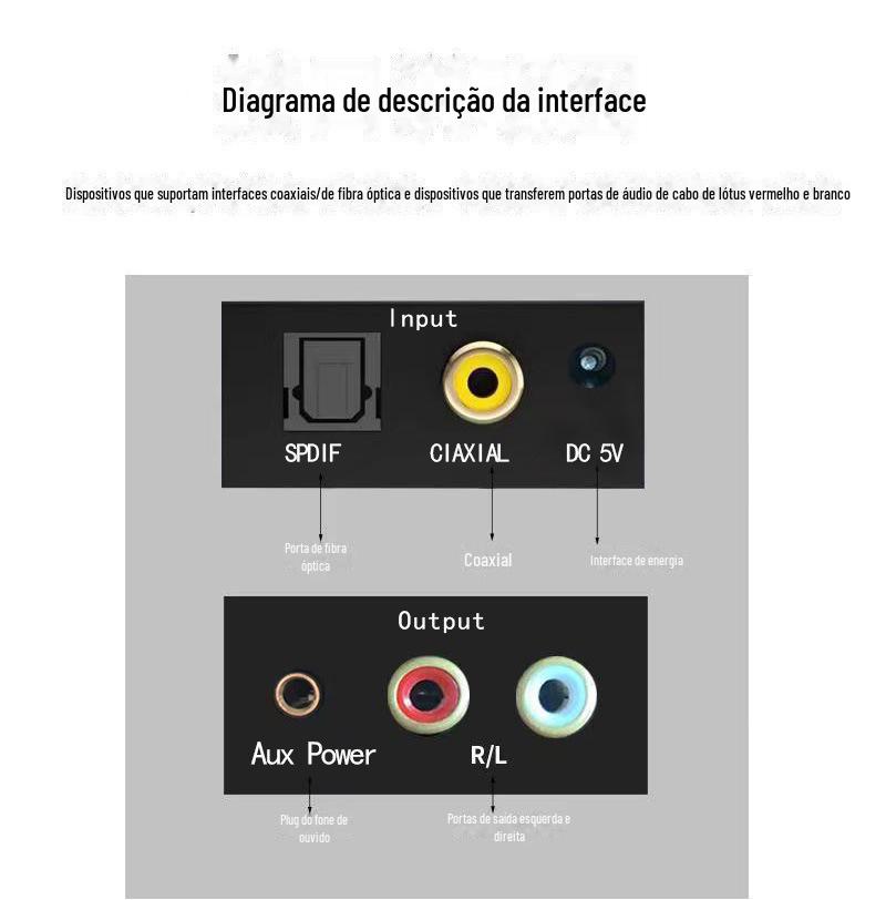 Novo plástico Bluetooth digital para conversor de áudio analógico com interface de fone de ouvido decodificador de áudio coaxial