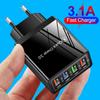Carregador de celular 4USB 3A cabeça de carregamento colorida LED lâmpada Regulamentos europeus Regulamentos dos EUA Regulamentos do Reino Unido fábrica transfronteiriça atacado