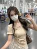 Francês Design Sense Tridimensional Rosa plissado manga curta T-shirt feminina verão irregular cintura emagrecimento top curto