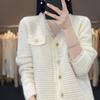 Suéter Estilo Tweed Barra Desfiada Cor Pura Cardigã de Lã Feminino Jaqueta Tricotada de Lã Feminina Nova Moda Primavera 2025