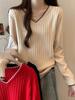 Suéter Tricotado Pulôver Decote V Cor Contrastante Inverno Coreano Rejuvenescedor Manga Longa Solto Emagrecimento Top Tricotado Feminino