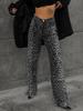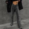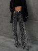 2024 Calças Estampadas de Leopardo Moda de Rua Europeia e Americana Transfronteiriça Feminina Outono Slim Cintura Alta Perna Reta Calças Casuais Atacado Roupas Femininas
