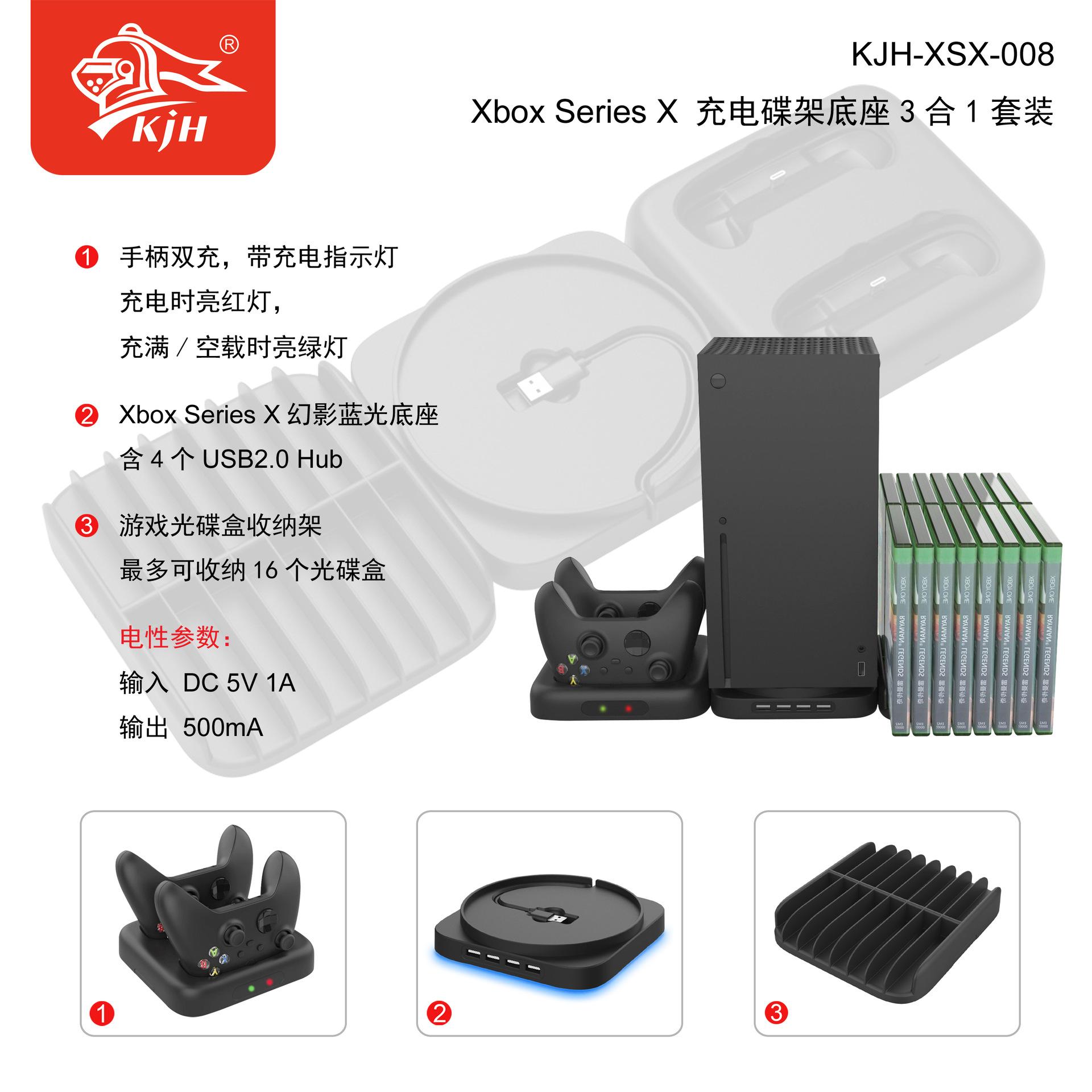 Base de host do Xbox Series X + carregador de assento de carregamento + rack de armazenamento de CD de jogos terno três em um