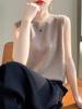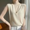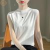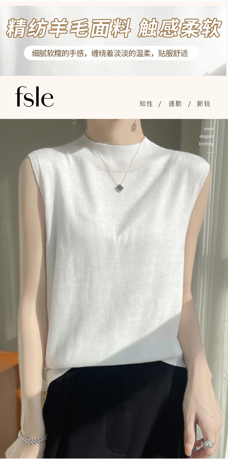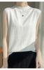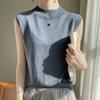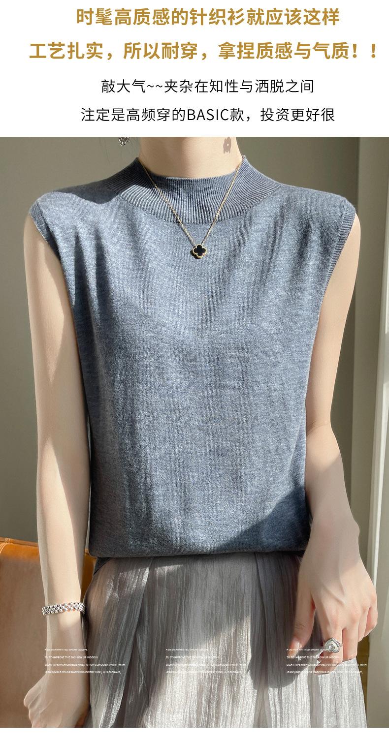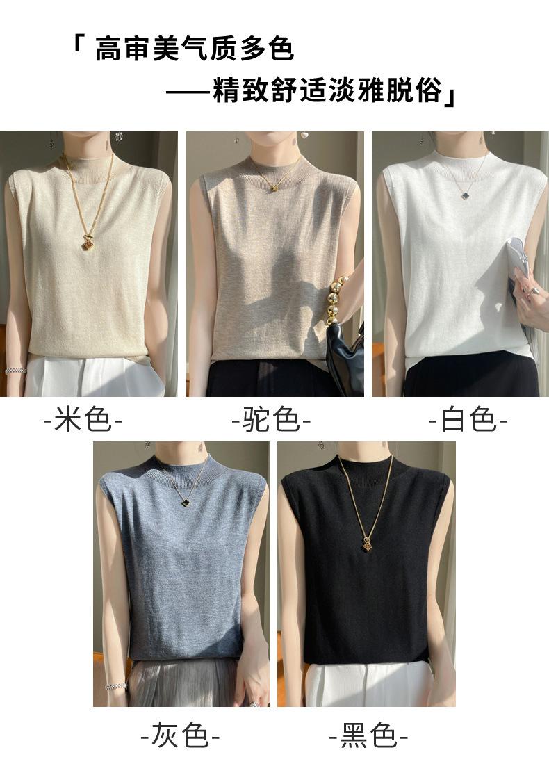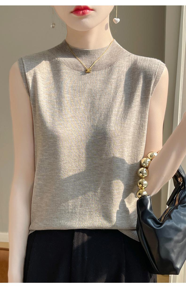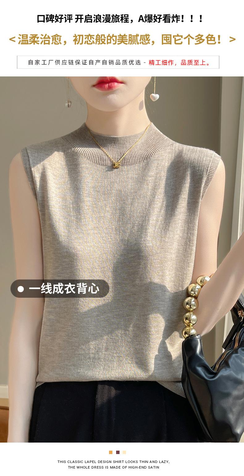Camisa de base de colete de gola meia-alta retrô de primeira linha, suéter fino sem mangas de lã penteada feminina, camisa de malha