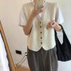 Primavera Novo Cardigan Colete Tricotado em Camadas Feminino 2024 Retrô Solto Decote V Sem Mangas Suéter com Colete