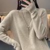 Vintage Solid Color Half-turtleneck Outono e Inverno Novo 100 Suéter Feminino All-match Thicked Loose Pullover Tricotado