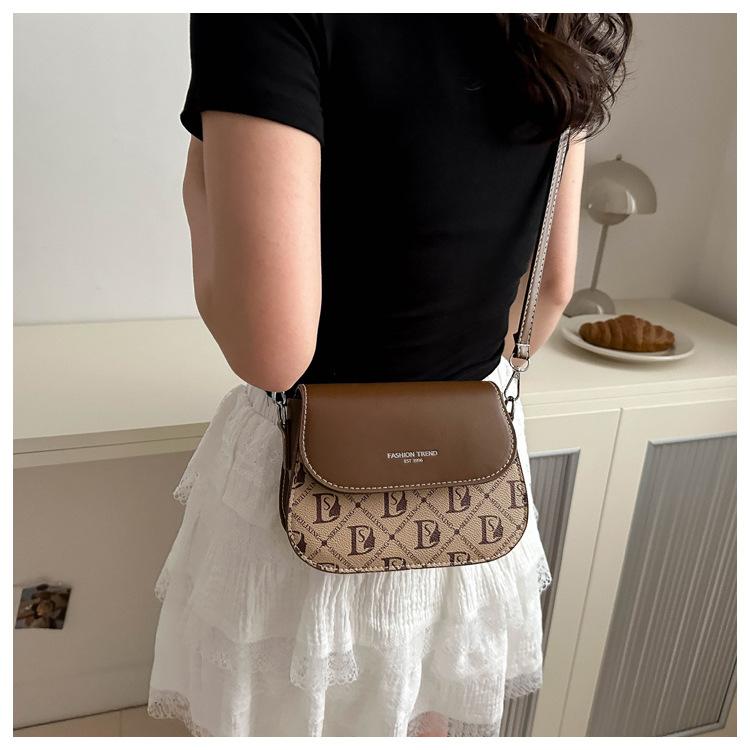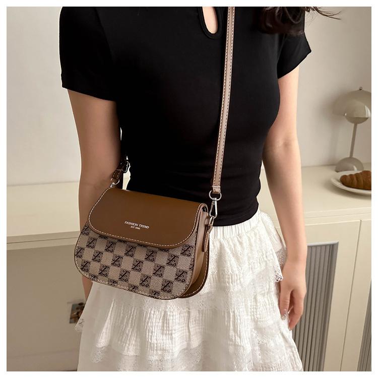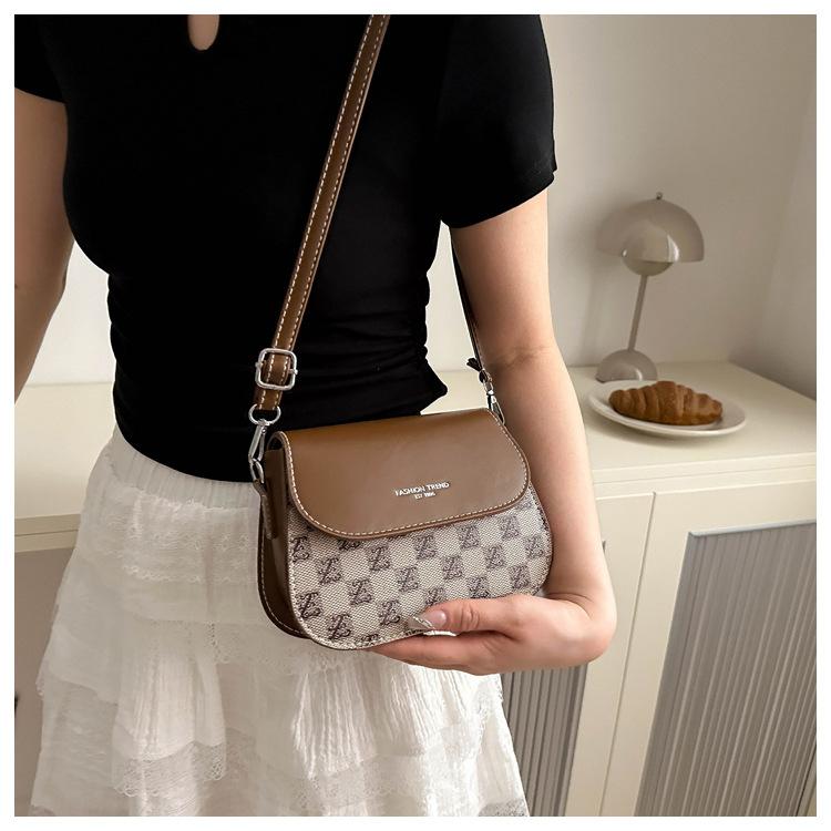 Cross-border Women's Bag 2024 Nova Moda Pequena Quadrada Bag Têxtil PU Shoulder Bag Nicho All-match Crossbody Bag
