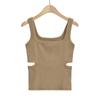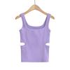 Estilo Europeu e Americano Cintura Oca Camisole Vest Mulheres 2023 Verão Nova Cor Sólida Slim-fit Gola Quadrada Slim-fit Short Top