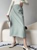 Mengzi Cintura alta com fenda nas costas saia de lã de seda feminina 2023 primavera e outono pequena saia de linha A de emagrecimento X1500