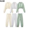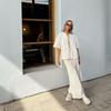 Cross-border 2023 outono novo feminino sólido cor renda-up pullover pescoço redondo manga curta manga curta sweater calças terno E73550