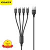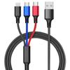 Um a três cabo de dados nylon trançado usb três em um carregamento rápido carro cabo de carregamento de telefone móvel cabo de carregamento de telefone móvel