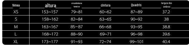 XL: Adequado para circunferência do peito abaixo de 98 cm, circunferência da cintura abaixo de 80 cm ou 2,4 pés
