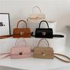 Cross-border Lock Retro Textura Solid Color Small Square Bag Mulheres 2024 Primavera Simples Estilo Western Shoulder Hand Crossbody Bag