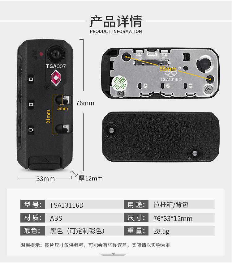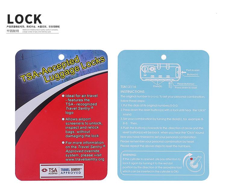 é especializada na produção de uma série de acessórios de bagagem, como fechaduras combinadas de bagagem, cadeados, fechaduras fixas, fechaduras alfandegárias TSA, carrinhos de bagagem, rodas de canto de bagagem, rodízios de bagagem e alças de bagagem. Os produtos são populares no mercado consumidor e gozam de alto status entre os consumidores. A empresa estabeleceu relações de cooperação estáveis e de longo prazo com muitos grandes fabricantes e agentes de malas. A empresa possui uma gama completa de produtos e preços razoáveis. Com forte força comercial, valorizamos o crédito, cumprimos contratos e garantimos a qualidade dos produtos. Conquistamos a confiança de nossos clientes com as características de operação multivariada e o princípio de pequenos lucros, mas de giro rápido.