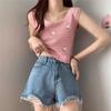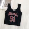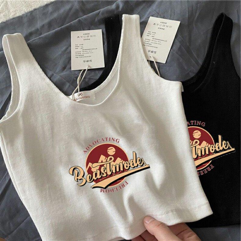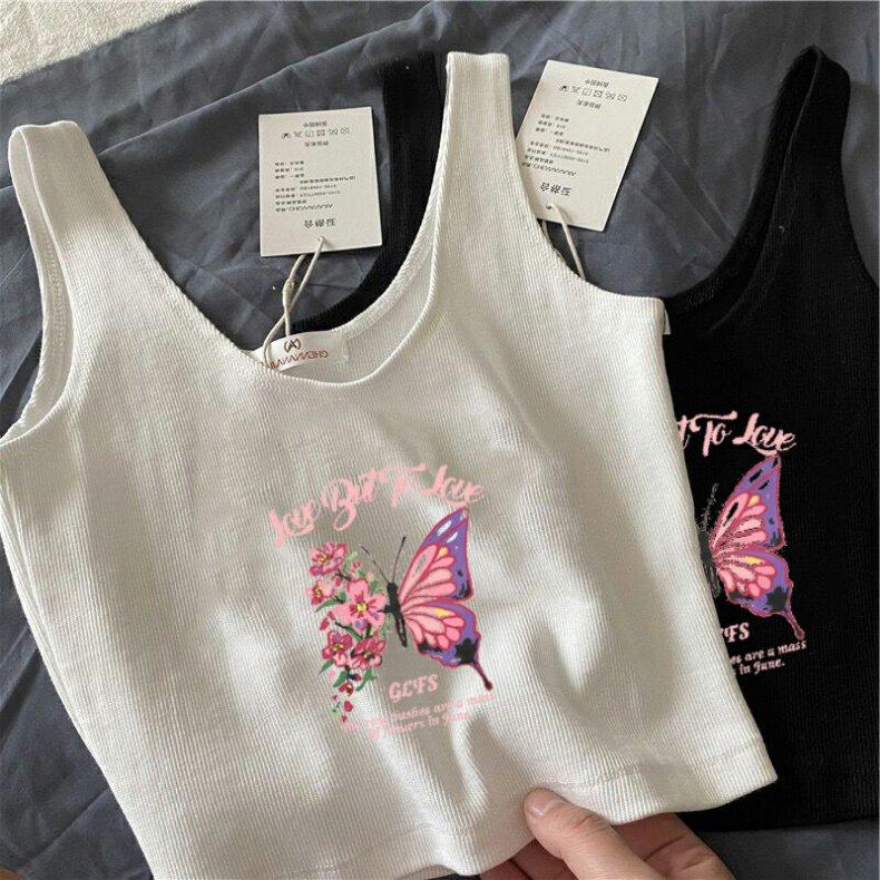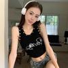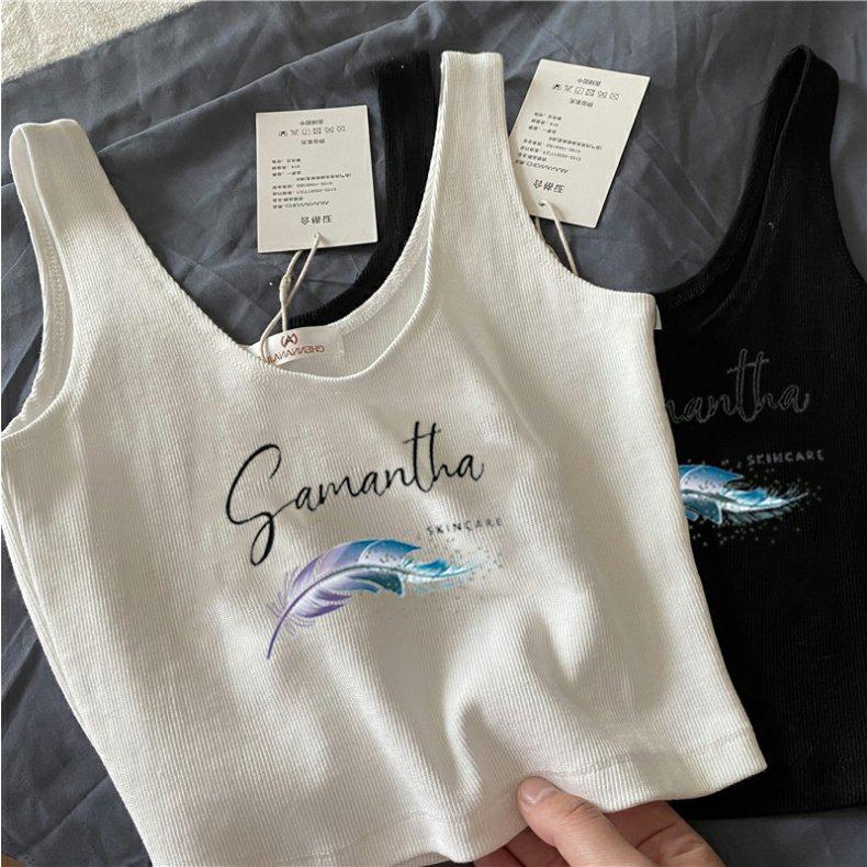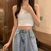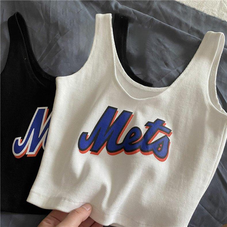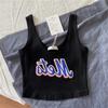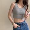 Colete feminino estilo americano Sweet Spice Girl com alça interna pequena e alça de seda gelada, design fino de verão, peça curta e sem mangas