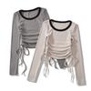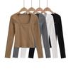 Pura menina quente sexy U-neck manga comprida ombro T-shirt feminina 2023 outono e inverno grande slim fit escovado top camisa inferior