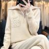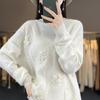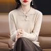 100% Lã Pura Outono e Inverno 2025 Nova Camisa Feminina Curta Solta Quente Tricotada para Usar por Baixo com Lapela Aberta e Meio Zíper