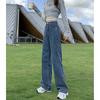 Retro azul cintura alta wide leg jeans para mulheres verão 2022 nova costura versátil casual loose emagrecimento calças retas