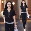 Estilo coreano novo traje esportivo casual 2024 verão falso de duas peças camiseta de manga curta top calça reta conjunto de duas peças para as mulheres
