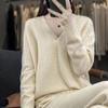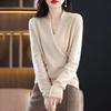 100% Lã Pura Outono e Inverno 2025 Novo Pulôver Curto Feminino Decote V Manga Longa Solto Transpassado Tricotado Cardigã Suéter