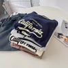 Moletom Feminino Estampado com Letras Gola Redonda Outono 2023 Novo Estilo Preguiçoso Oversize Solto Jaqueta Top Estudante