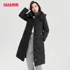 Jaqueta de Penas de Pato para Mulheres, Estilo Longo, Modelo Novo de Inverno 2025, Acinturada, Fashion, Casual, Espessa, Comprimento Estendido, Casaco Quente e à Prova de Vento