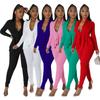 K10303 Amazon European and American Explosions Calça lápis feminina de outono com decote em V e babados, manga comprida, cor sólida, corte slim