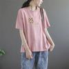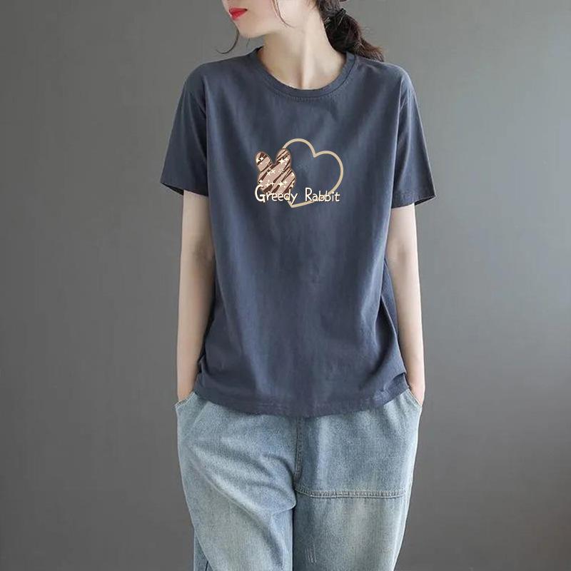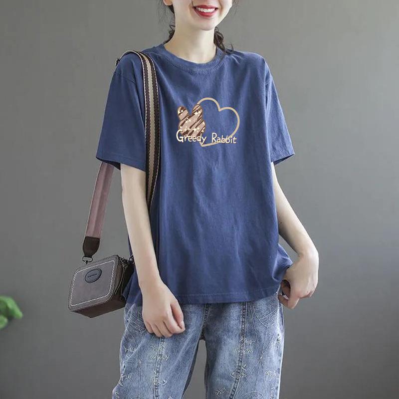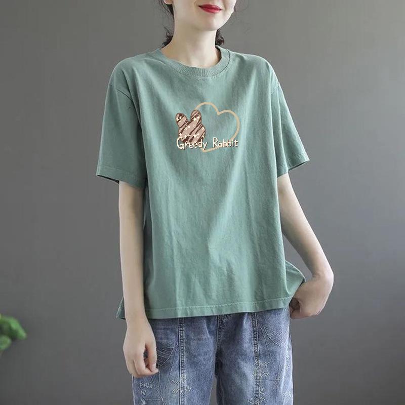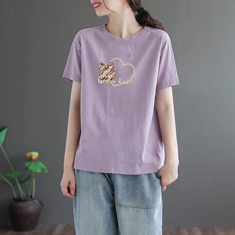 Verão novo commuter manga curta feminina camiseta diária gordinha emagrecendo casual solto artístico plus size estilo ocidental top