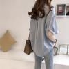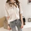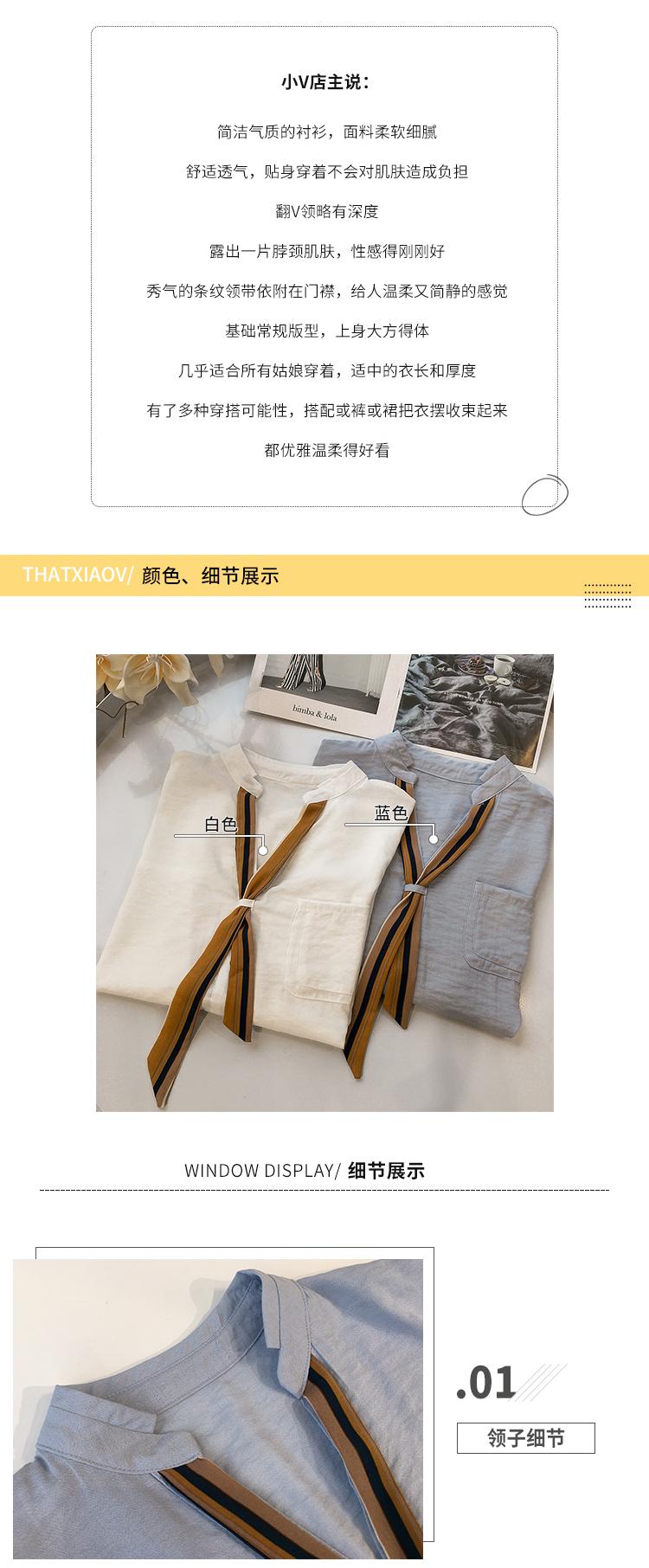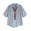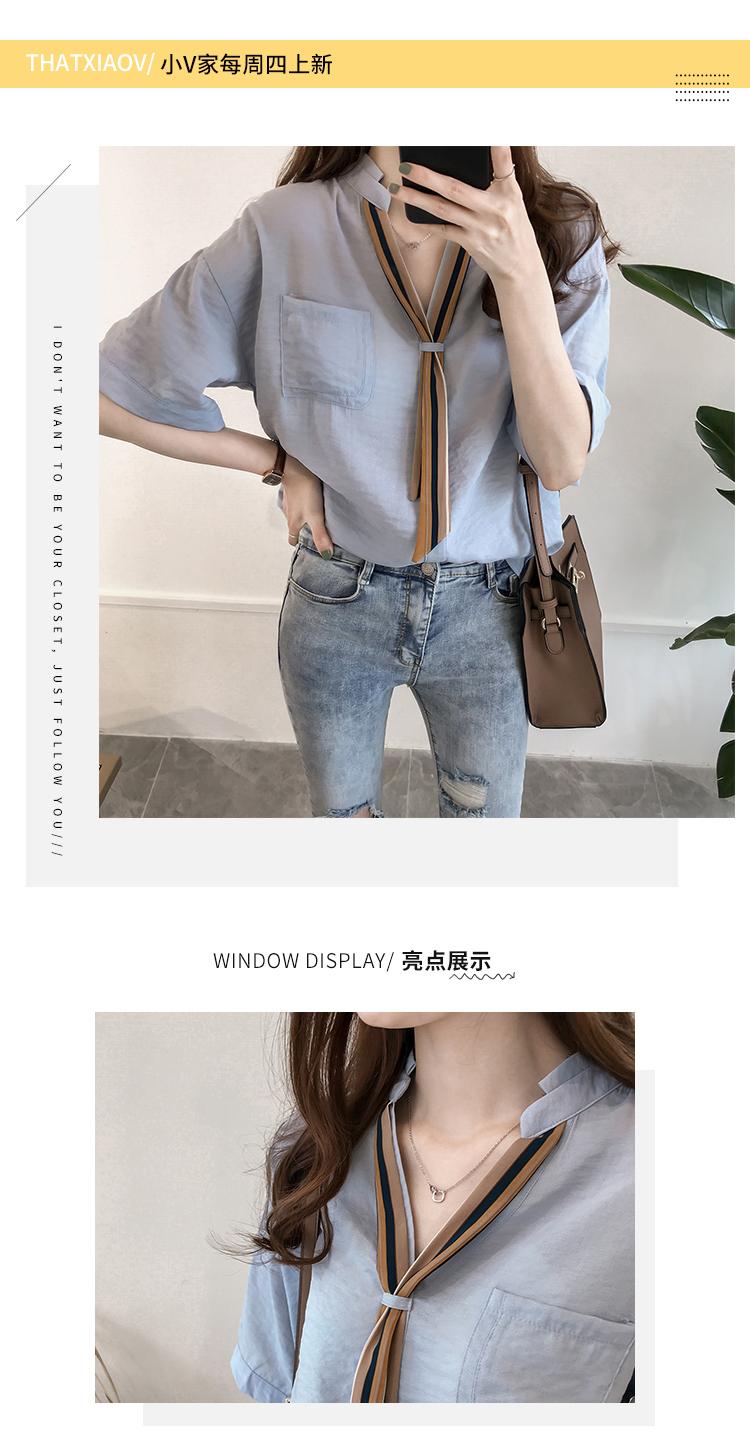 Verão 2025 Nova Moda Feminina Camisa Listrada com Laço Top Feminino de Manga Curta Solto Mais Fácil de Combinar Camisa de Meia Manga