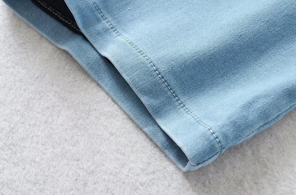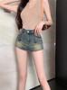 Calças jeans de cintura alta para mulheres no estilo europeu e americano stretch slim fit sexy bainha A- linha jeans shorts