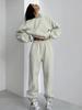 Personalidade europeia e americana moda cinza pescoço redondo suéter terno feminino 2024 primavera cross-border top sweatpants conjunto de duas peças