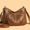 2023 Novo Estilo Super Macio Material de Couro Lavado Bolsa Feminina de Grande Capacidade Multicamadas Bolsa Transversal de Ombro Único Fashion
