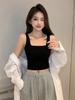 Regata Cropped de Algodão Puro com Decote Quadrado Feminina Design Slim-Fit com Alças Largas, Top Camiseta Básica de Cintura Alta