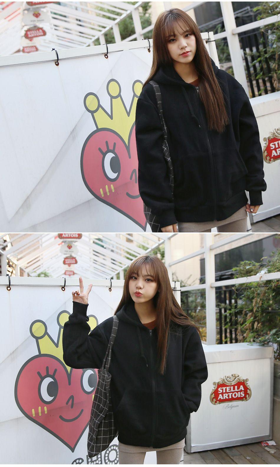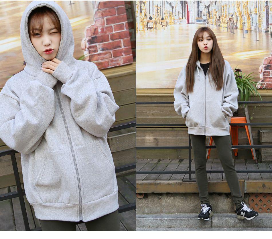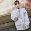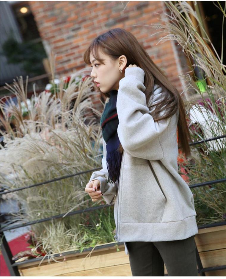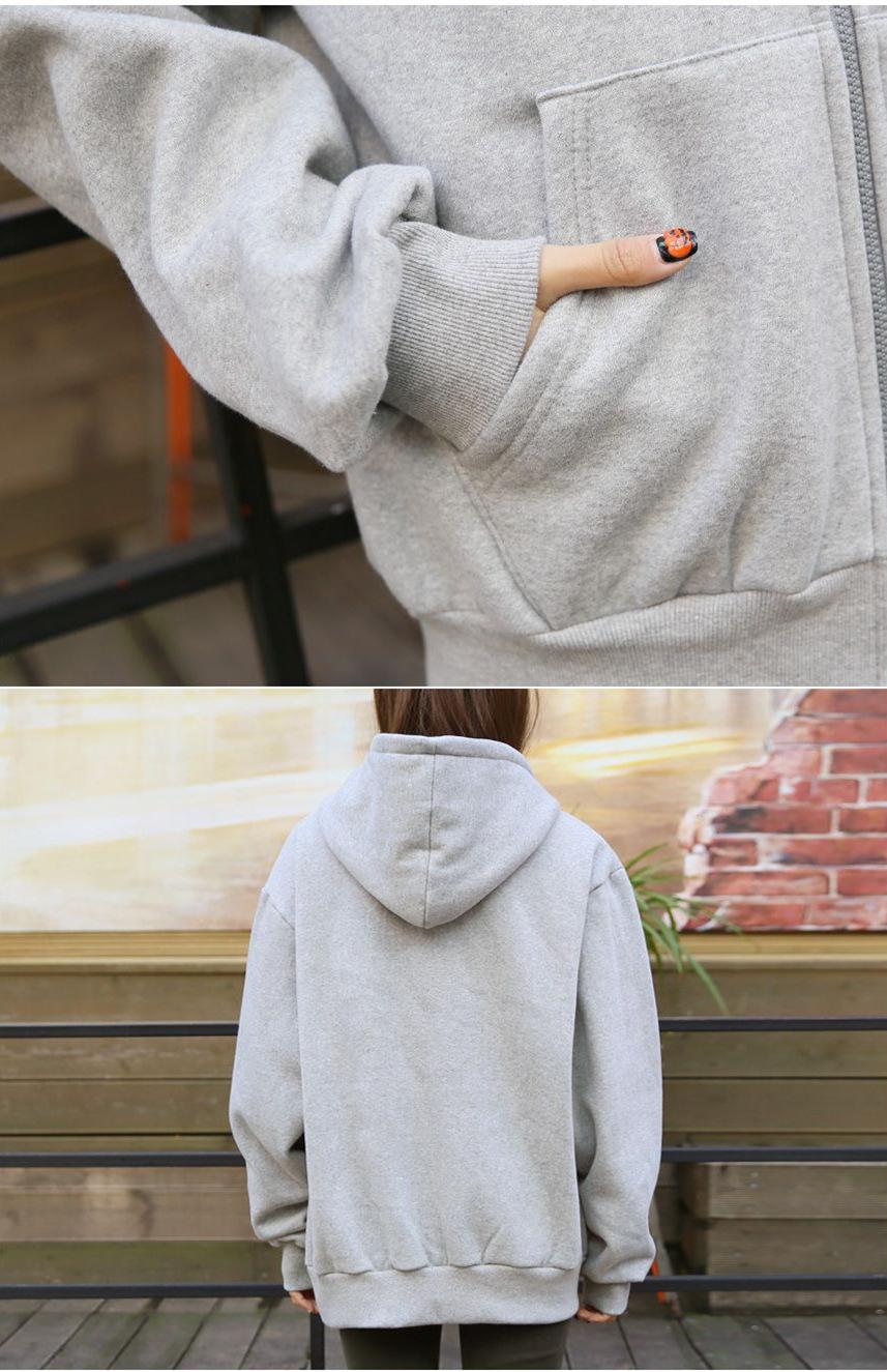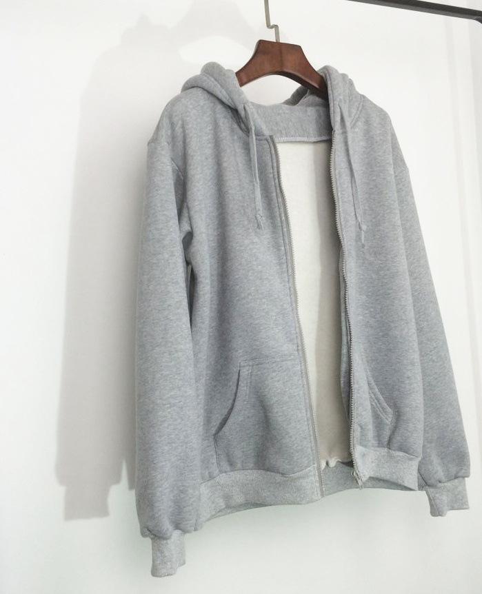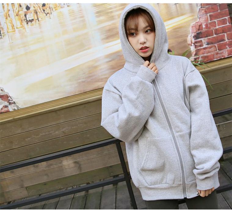 Taobao explosão 2020 outono e inverno feminino coreano cor sólida grosso casaco com zíper cardigan mais veludo suéter com capuz